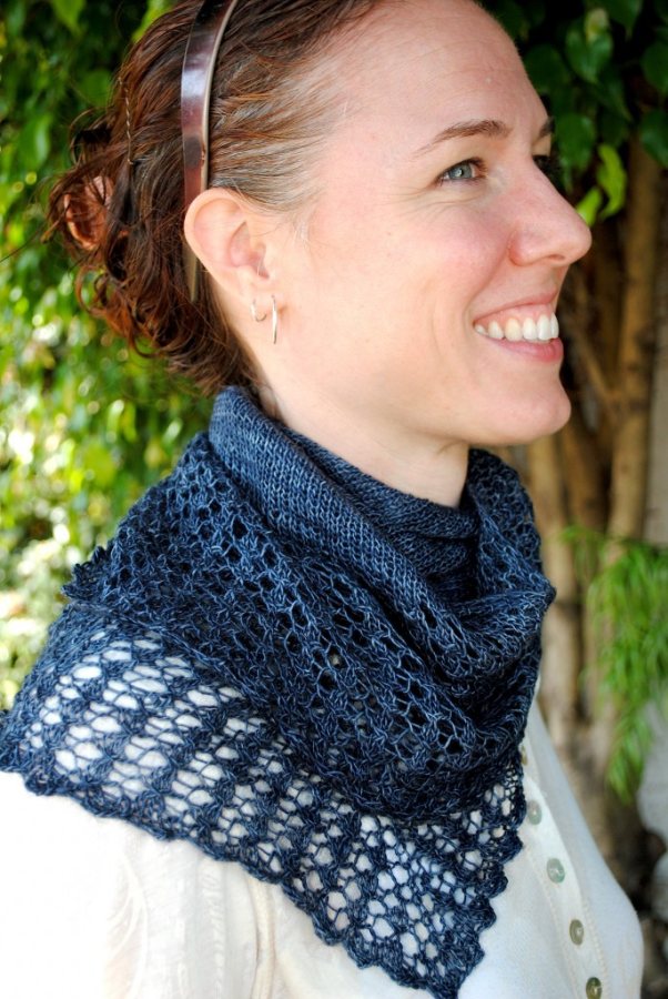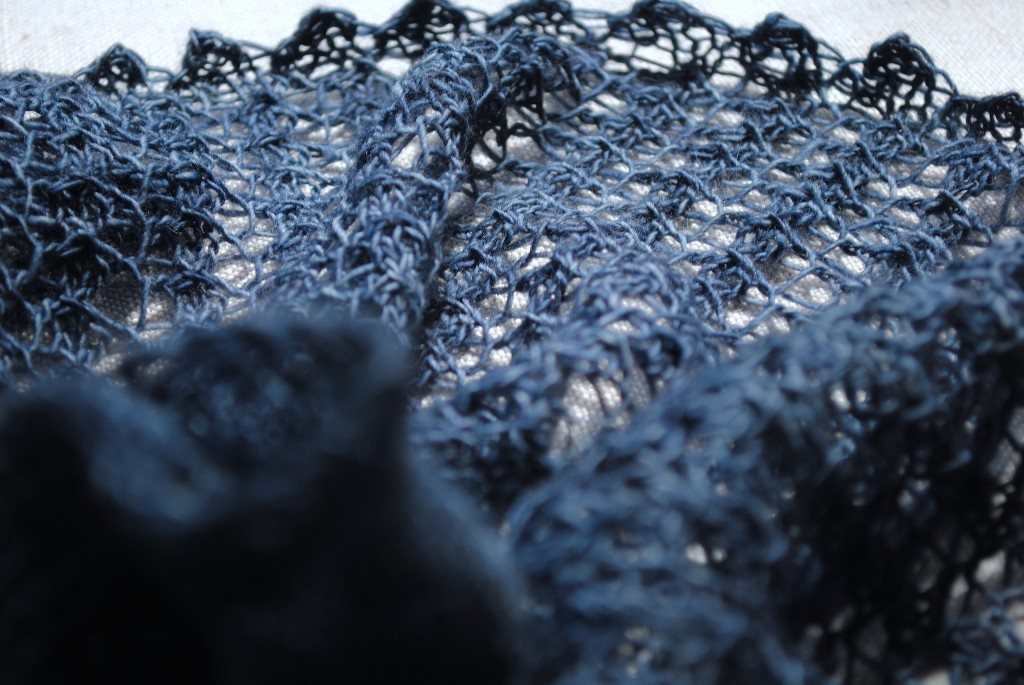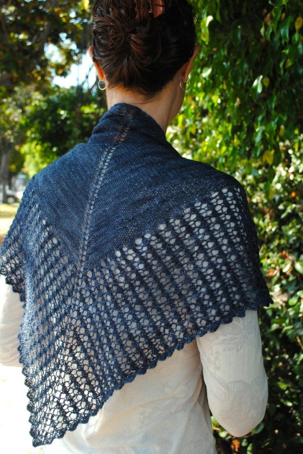 I have knit countless of these shawls and shawlettes as gifts. Every time I make one the personality of the recipient shows through the yarn choice and color. I have used everything from hand-spun, hand-dyed, to stainless steel. Here are some images of the versatility of Crashing Waves.