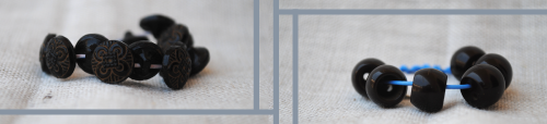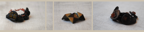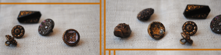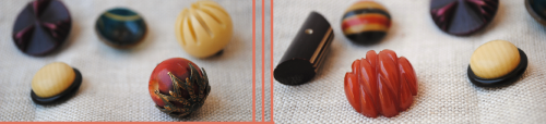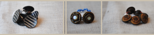 From left to right: painted metal, metal with mother of pearl, and hand carved bakelite.