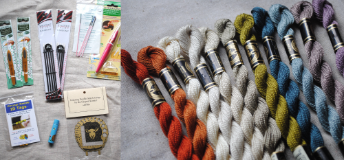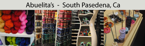 I was particularly surprised by Abuelita’s in South Pasedena. I’ve known about the shop for years, but I had never heard anything about it. What a cute store in such a cute part of town! A pleasant surprise. Among carrying beautiful yarns of all kinds the shop was fully stocked with all kinds embroidery supplies. This was such a pleasant surprise for me, I didn’t expect anything like that at all. Among all the Pearl Cotton and other embroidery yarns, there were so many other fun accessories for knitting and crochet. I really had to restrain myself! I even ran into a friend of mine there, Mira Cole owner and creative genius behind Baah Yarn, a wonderful hand-dyed yarn company with absolutely fabulous colors!