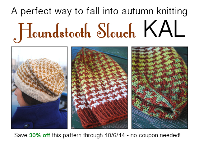 Don’t forget about the Houndstooth Slouch KAL – it’s not too late to join us! Plus three lucky participants will be automatically entered to win one of the three awesome prizes! Â Join a community of knitters as we all journey through the joys of this wonderful autumn-y pattern!