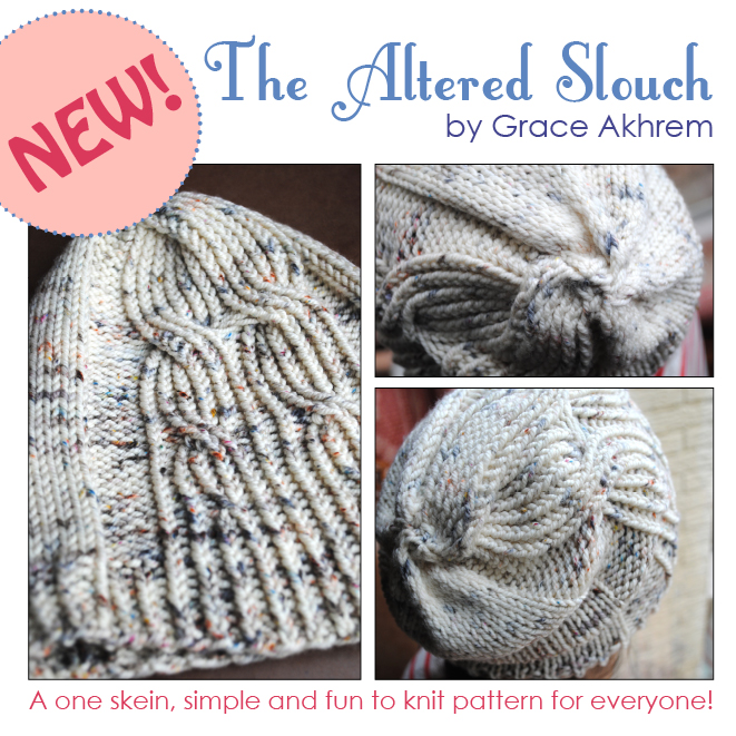 Its about time I come out with a new pattern.  Meet The Altered Slouch.  This one skein slouchy beanie, has one climbing twisted rib cable that adorns one side of the hat while the other side is simple and neat allowing the cable to shine.  The hat is then embellished with pleating decreases which add an interesting textural element that allows this piece to be gender neutral.  Knit this for yourself or any loved one! Enjoy!
