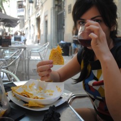 From left to right: Me shopping at All You Knit is Love wearing my Janna’s Tunic, a random yarn bombing in the Gothic Quarter, my sister polishing off a bowl of very Spanishy nachos and washing it all down with a hearty pitcher of sangria.